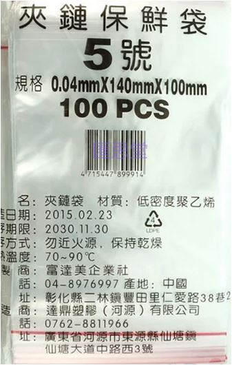 5號夾鏈袋(薄)140X100mm-100入