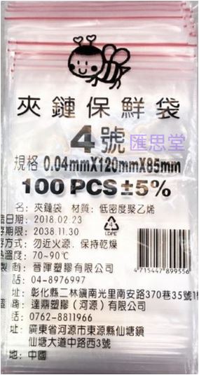 4號夾鏈袋(薄)120X85mm-100入
