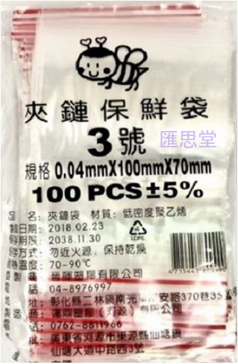 3號夾鏈袋(薄)100X70mm-100入