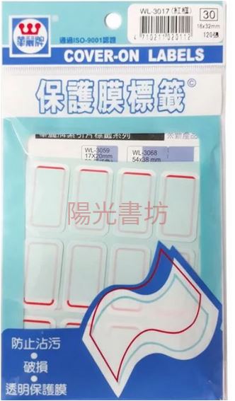 華麗牌WL-3017保護膜標籤-紅框1.8x3.2cm