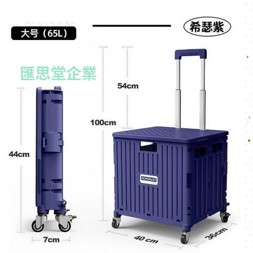 光明 4輪萬向輪拉桿可折疊購物車紫色大(65L)