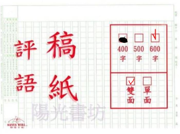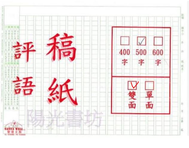 聖偉600字80磅稿紙A3菊8k評語欄100張-雙面