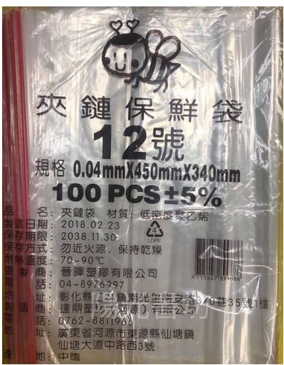 12號夾鏈袋(薄)340x450mm/100入