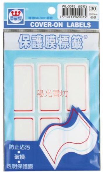 華麗牌WL-3015保護膜標籤-紅框2.5X5.3cm