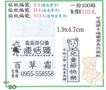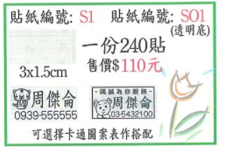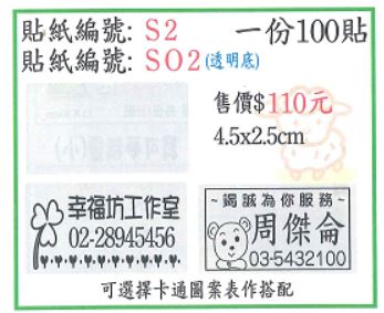 姓名貼 銀龍 編號S04 1.9X4.7cm透明底黑字