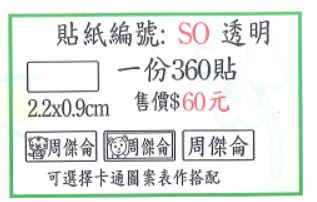 姓名貼 銀龍 編號SO1 3x1.5cm透明底