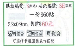 姓名貼 銀龍 編號S4 1.9X4.7cm銀底黑字
