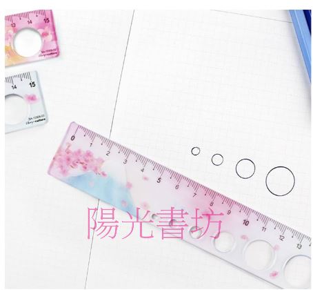 珠友 洞洞尺直尺測量尺製圖測量-15cm-櫻攴日