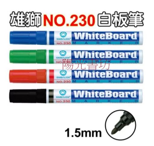 雄獅 NO.230 尖頭白板筆 (筆幅2.3mm)-黑色