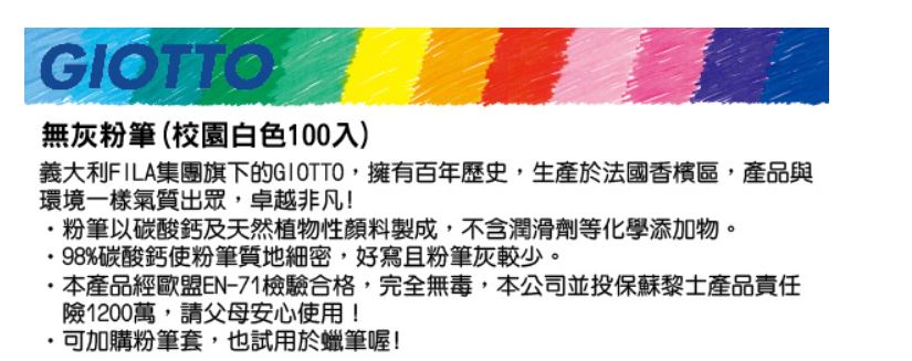 【義大利GIOTTO】無毒環保粉筆(10色100入)