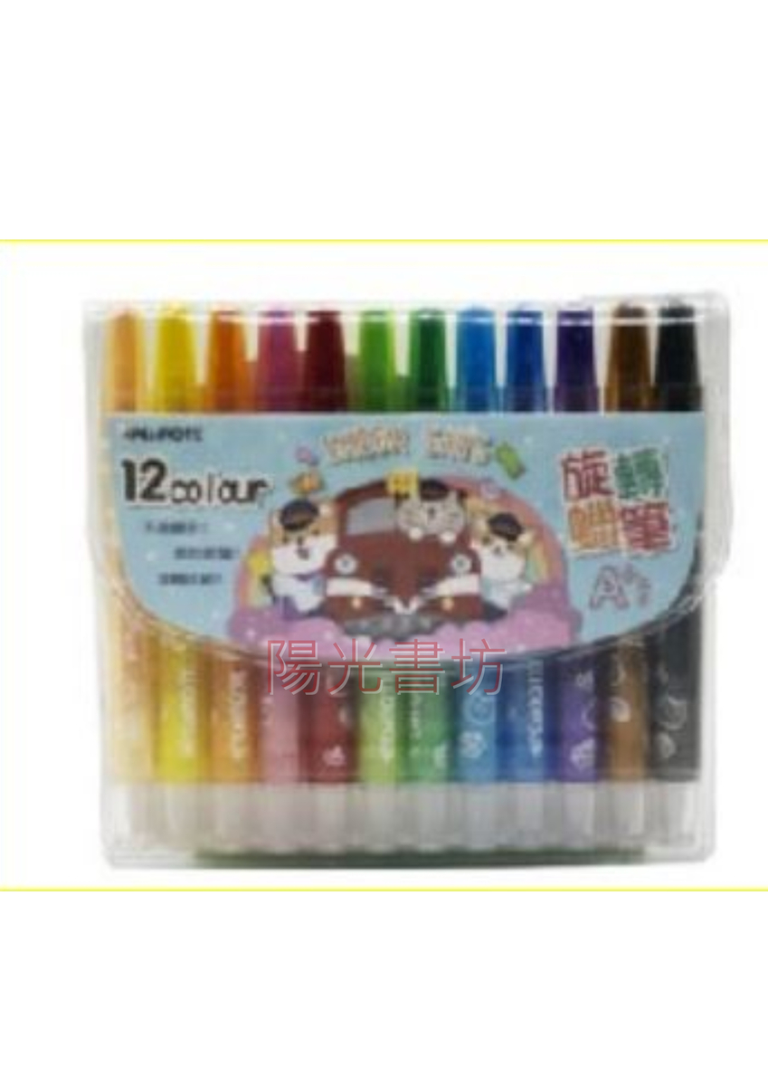 筆樂 PG-8119 12色長桿旋轉蠟筆(盒)