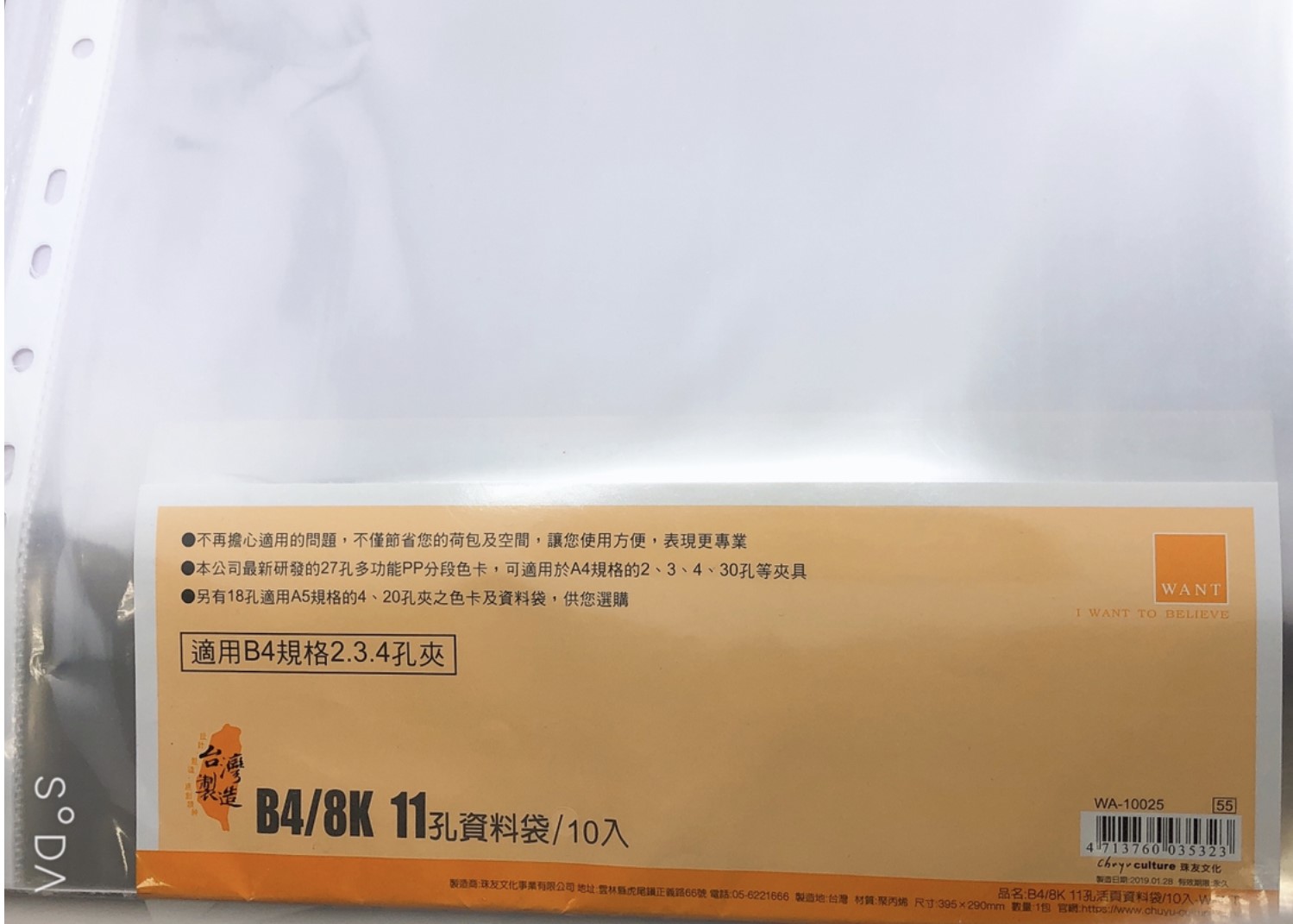 珠友 WA-10025 B4/8K資料袋11孔(10入)