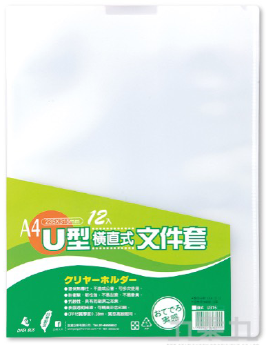 A4 透明U型夾(12入)U夾-霧白色