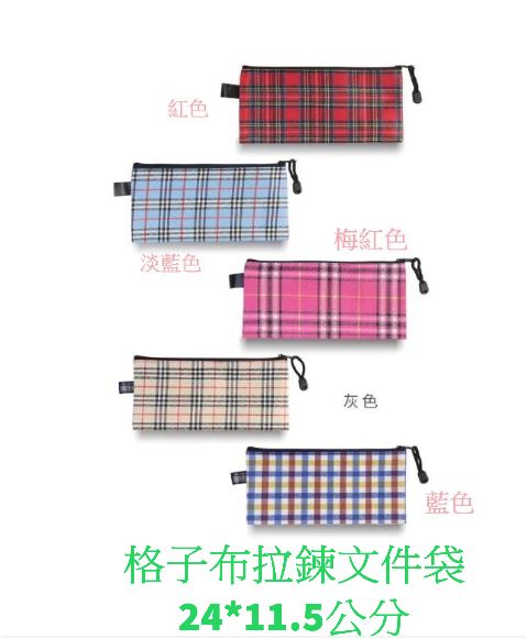 陸華-格子布文件袋拉鍊袋24X11.5公分-混款出