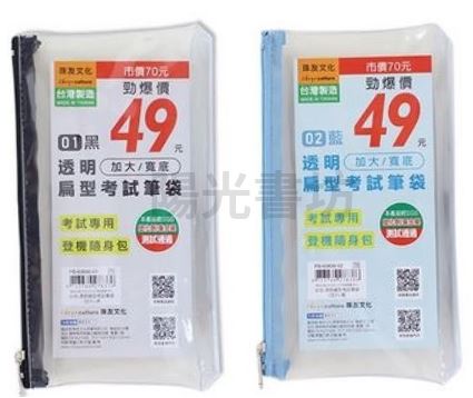 珠友PB-60666透明扁型拉鍊考試筆袋/收納包
